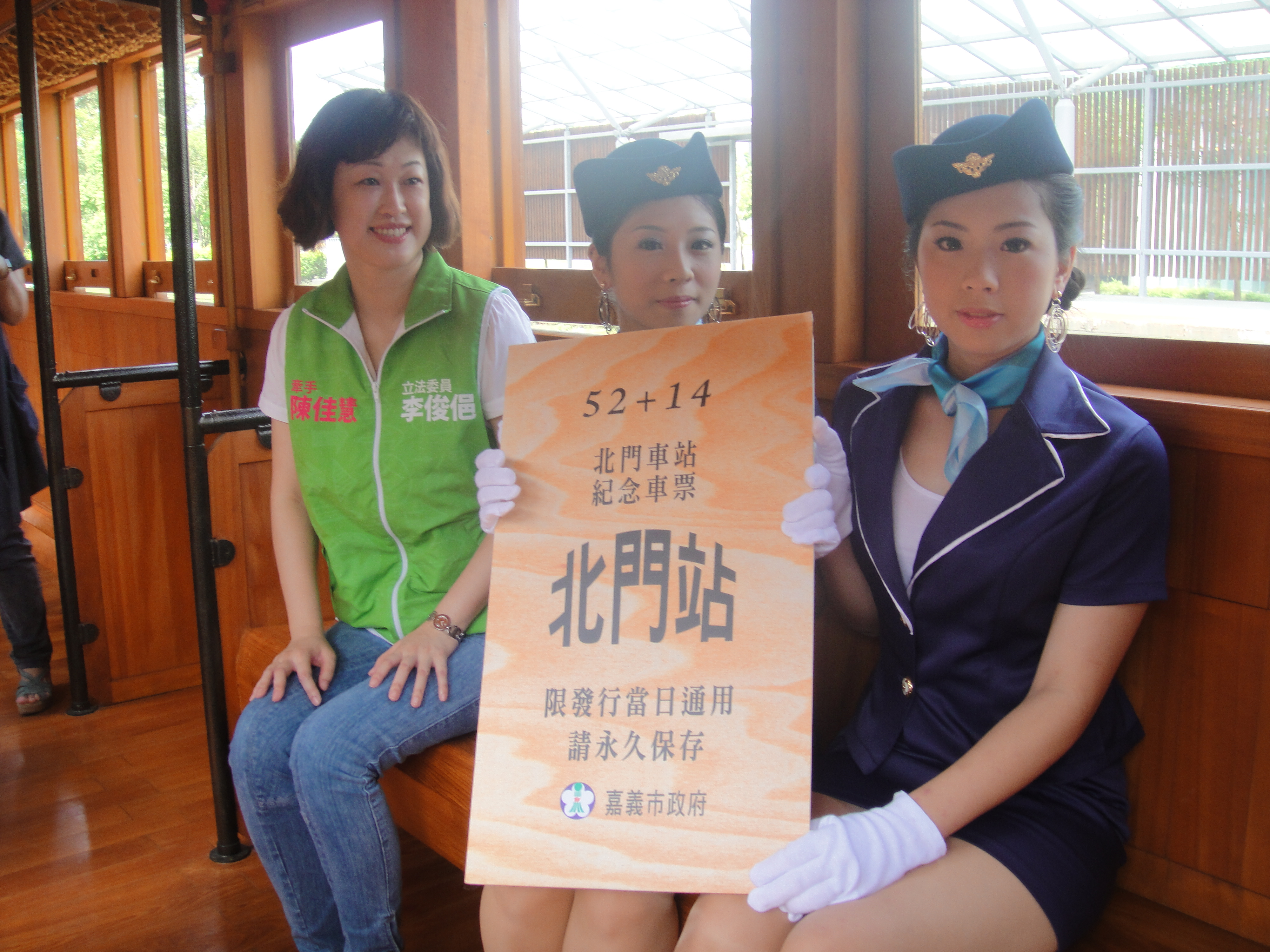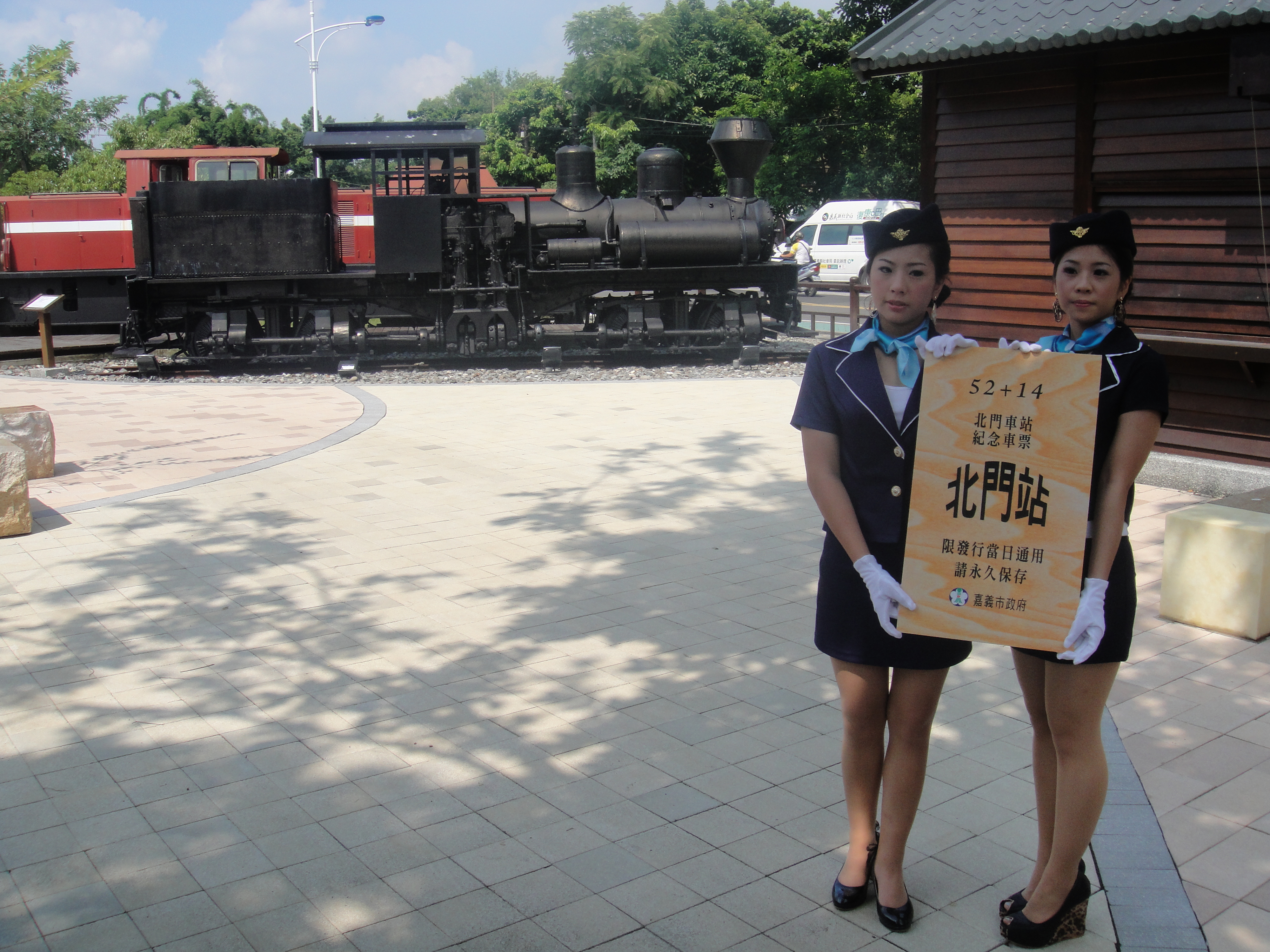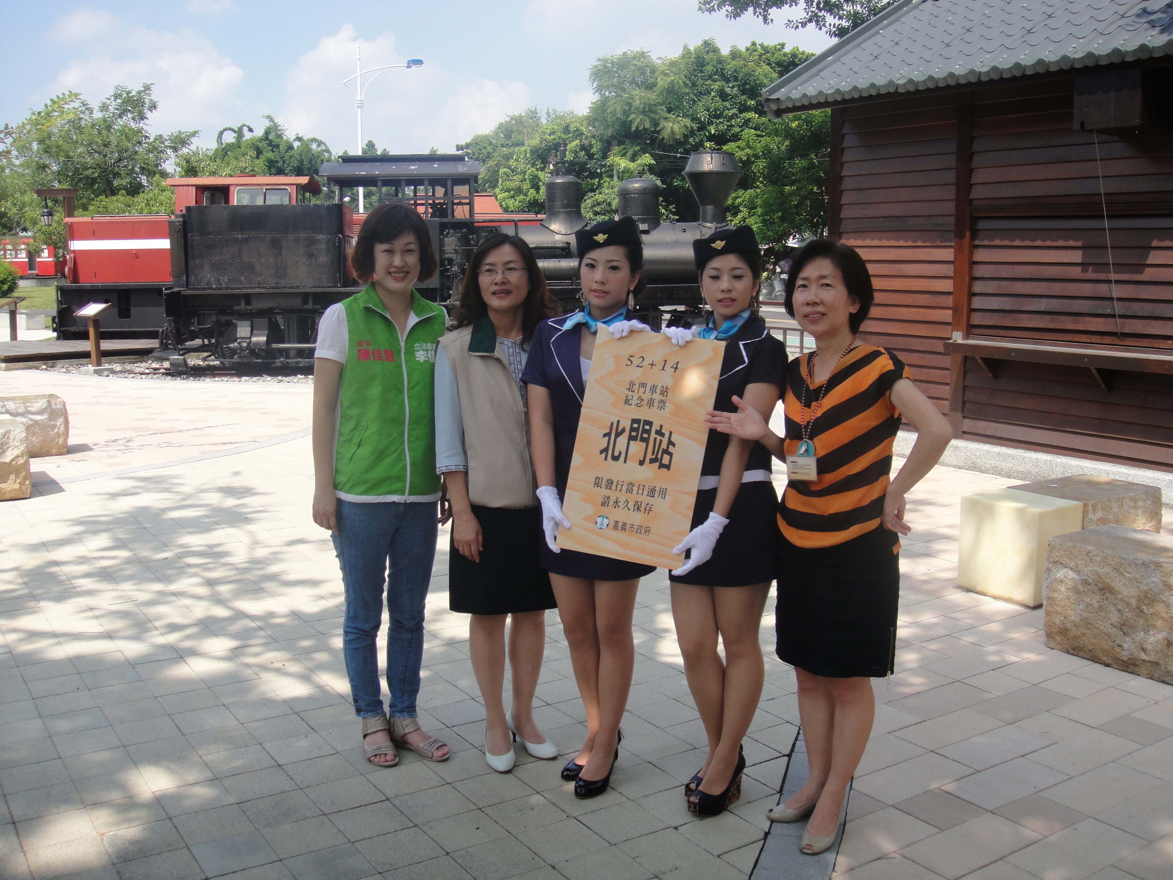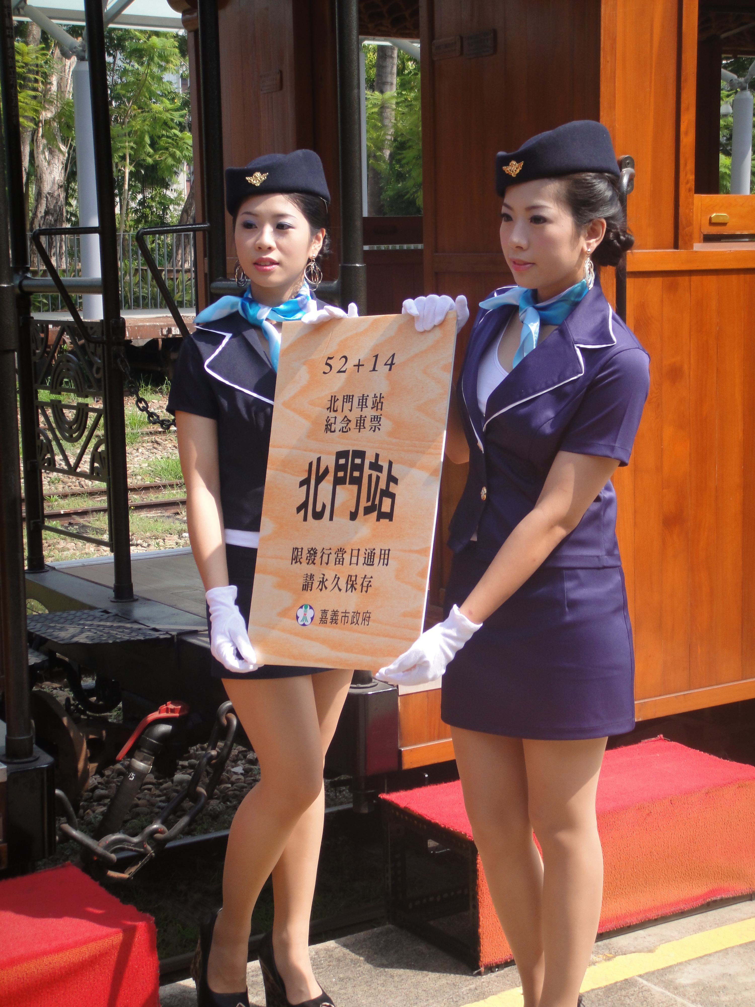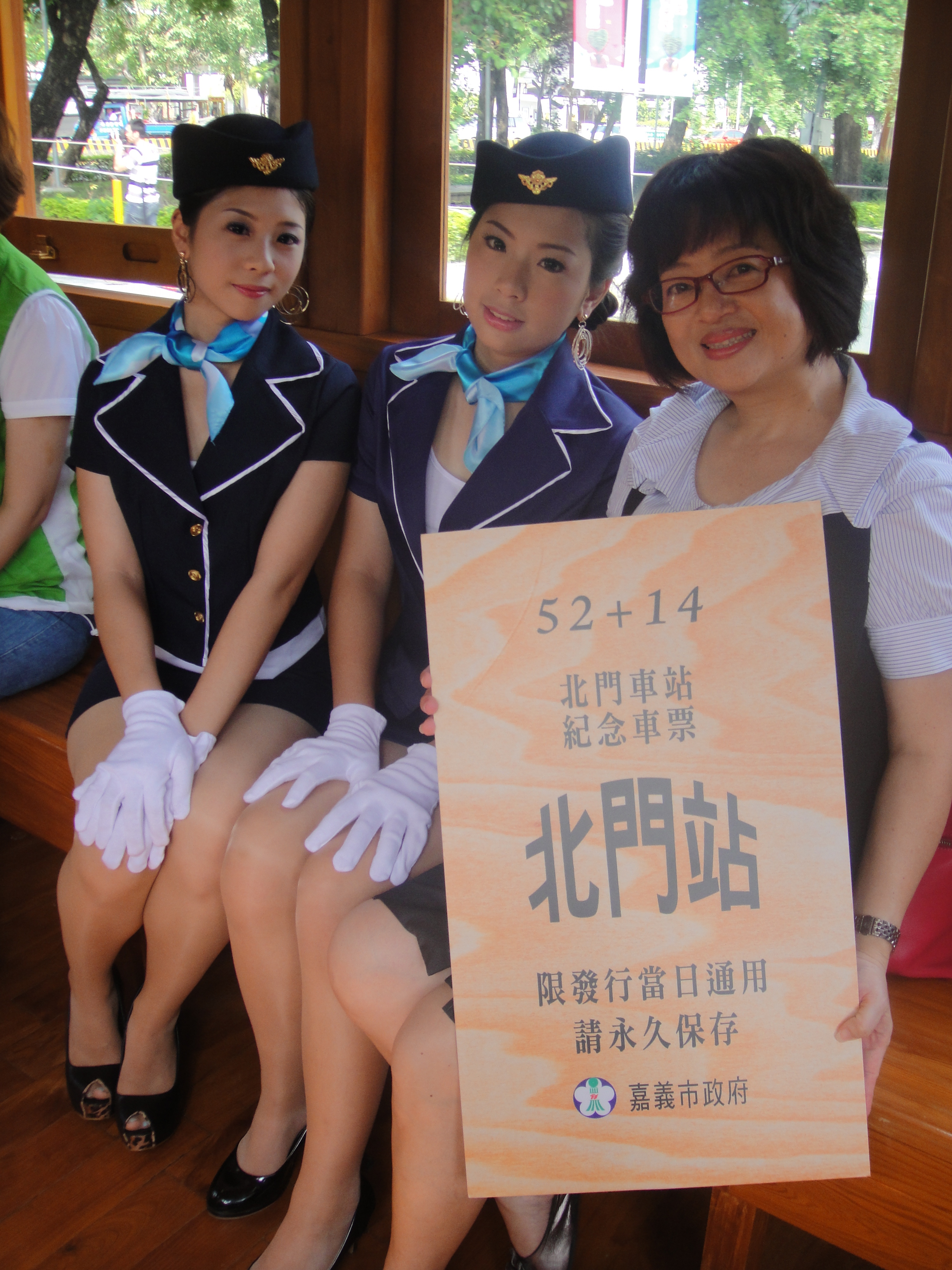 協助嘉義古蹟週時尚造型科學生昨天扮成美麗車掌小姐,現身北門驛1010913