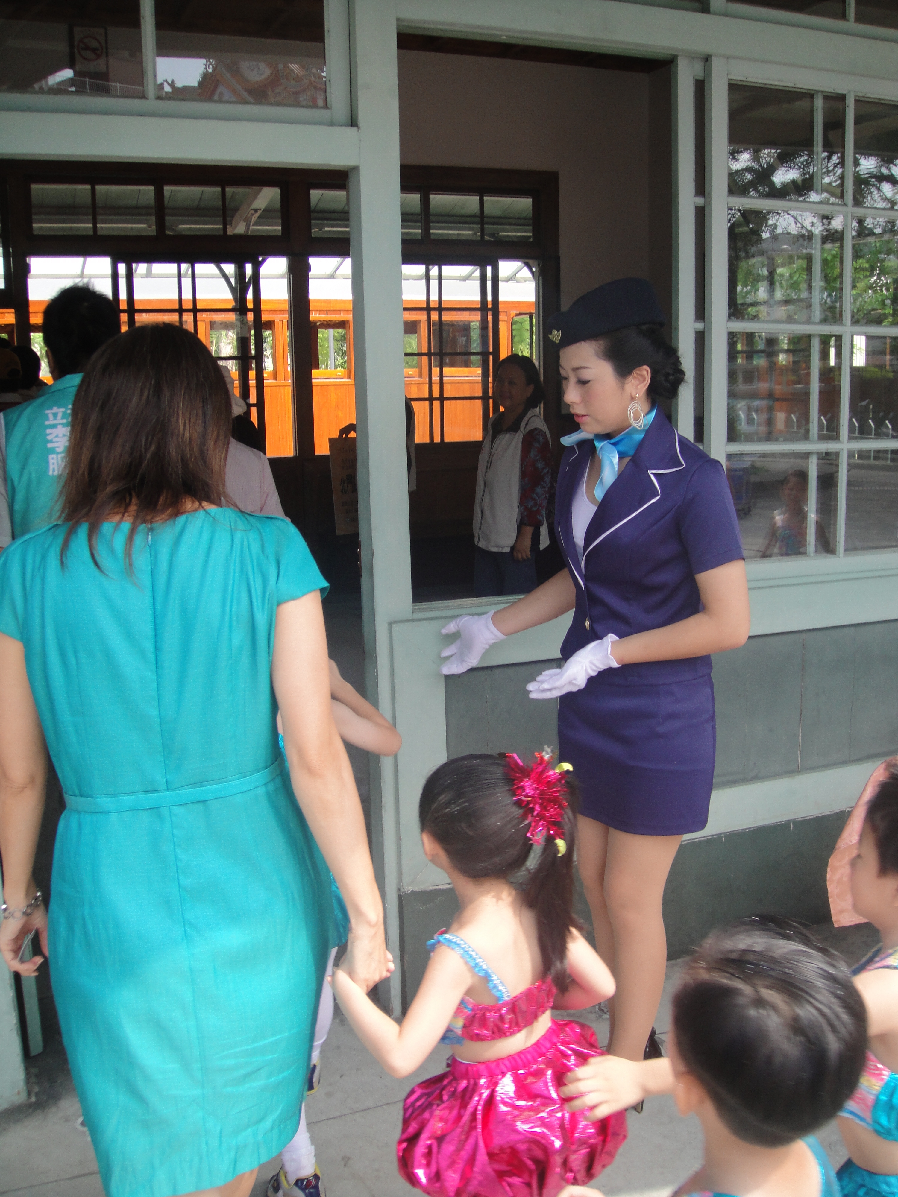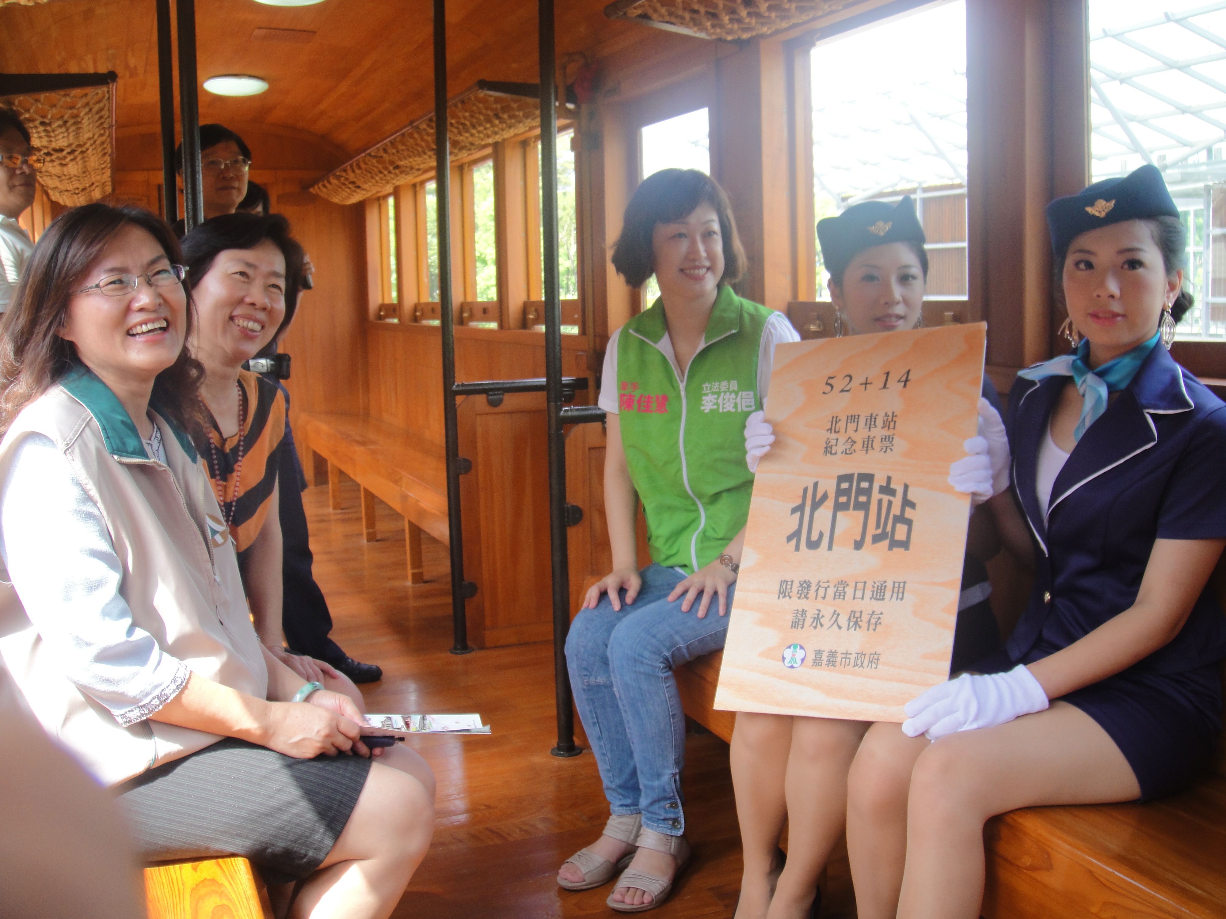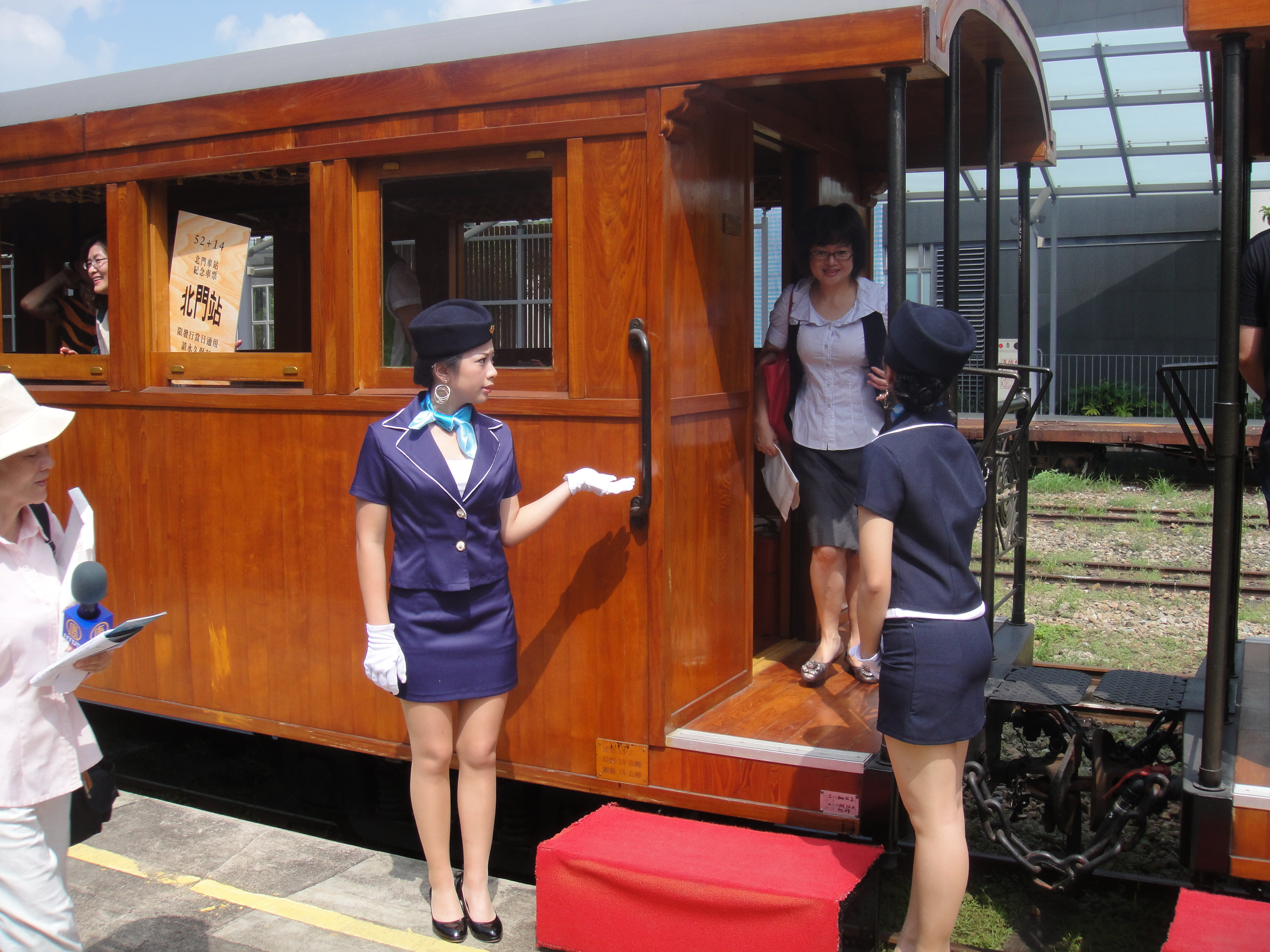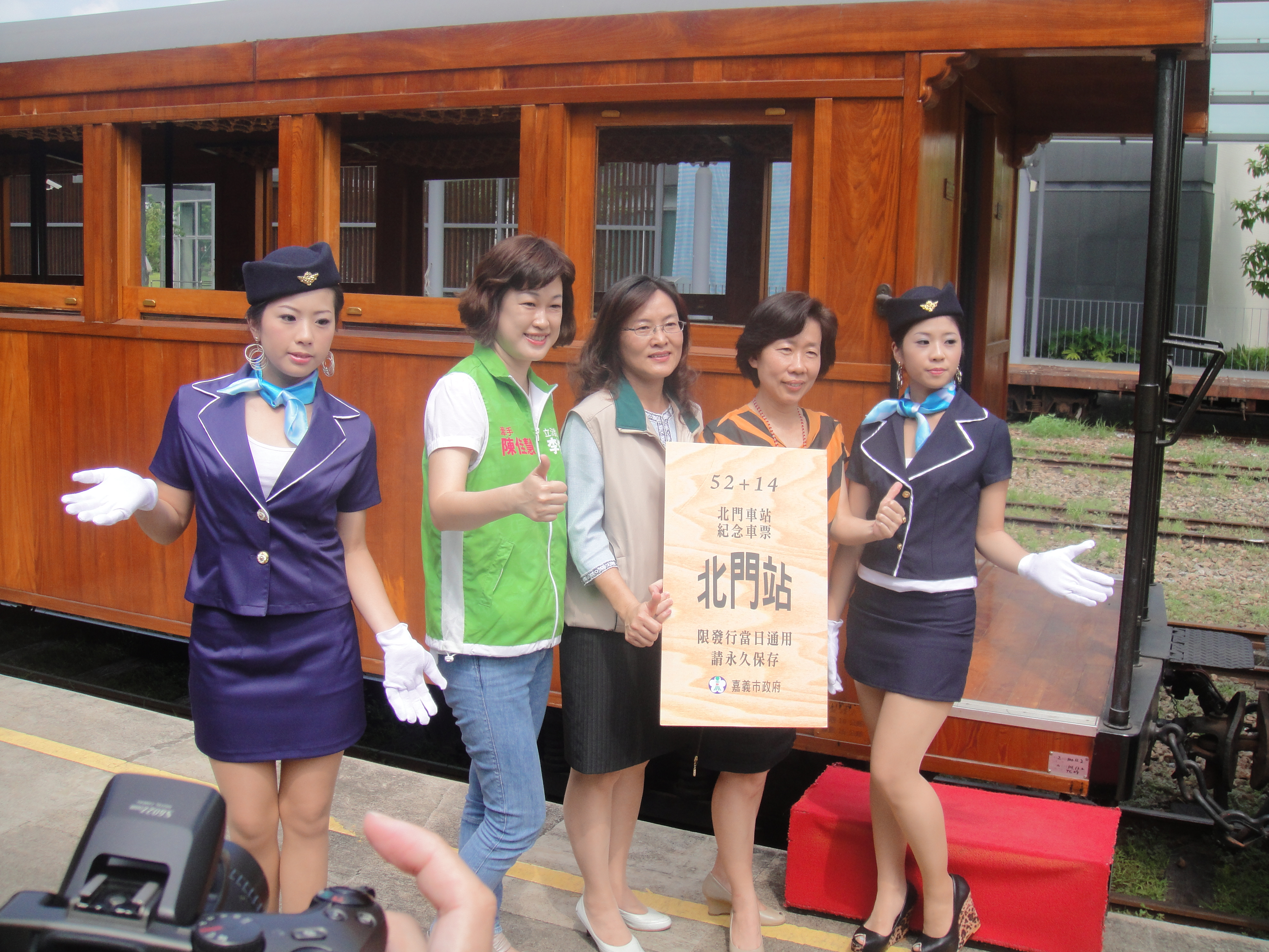 協助嘉義古蹟週時尚造型科學生昨天扮成美麗車掌小姐,現身北門驛1010913