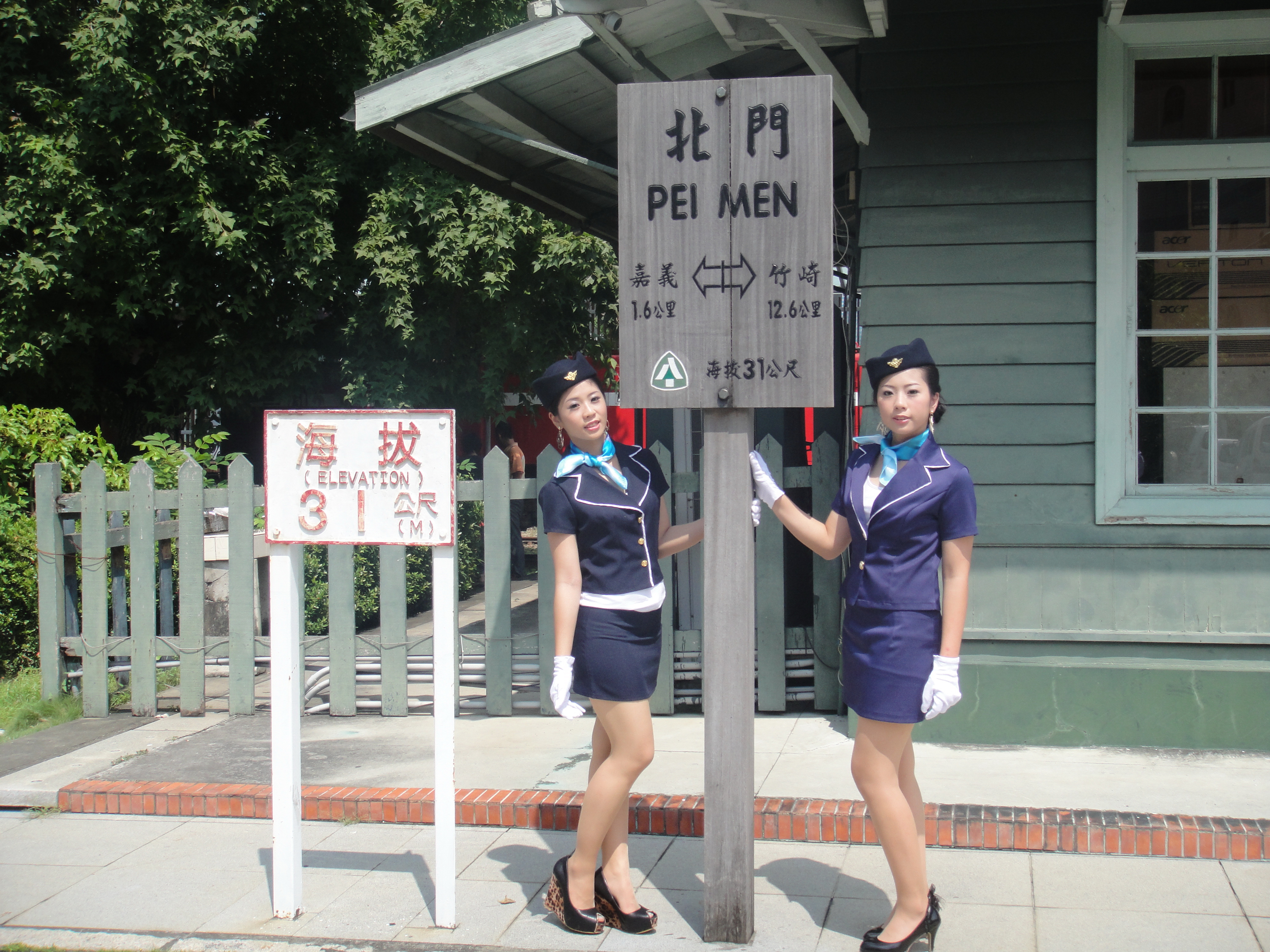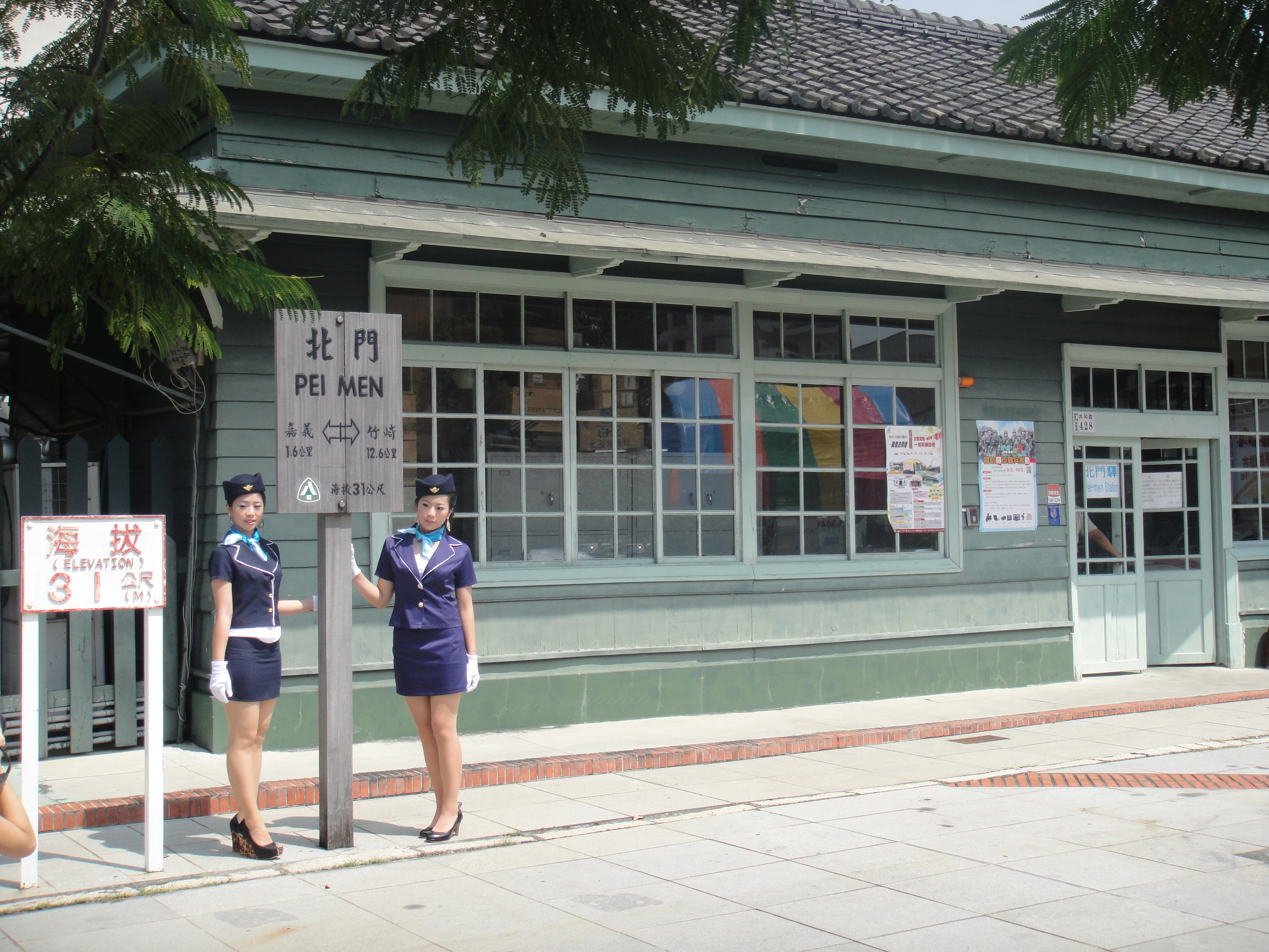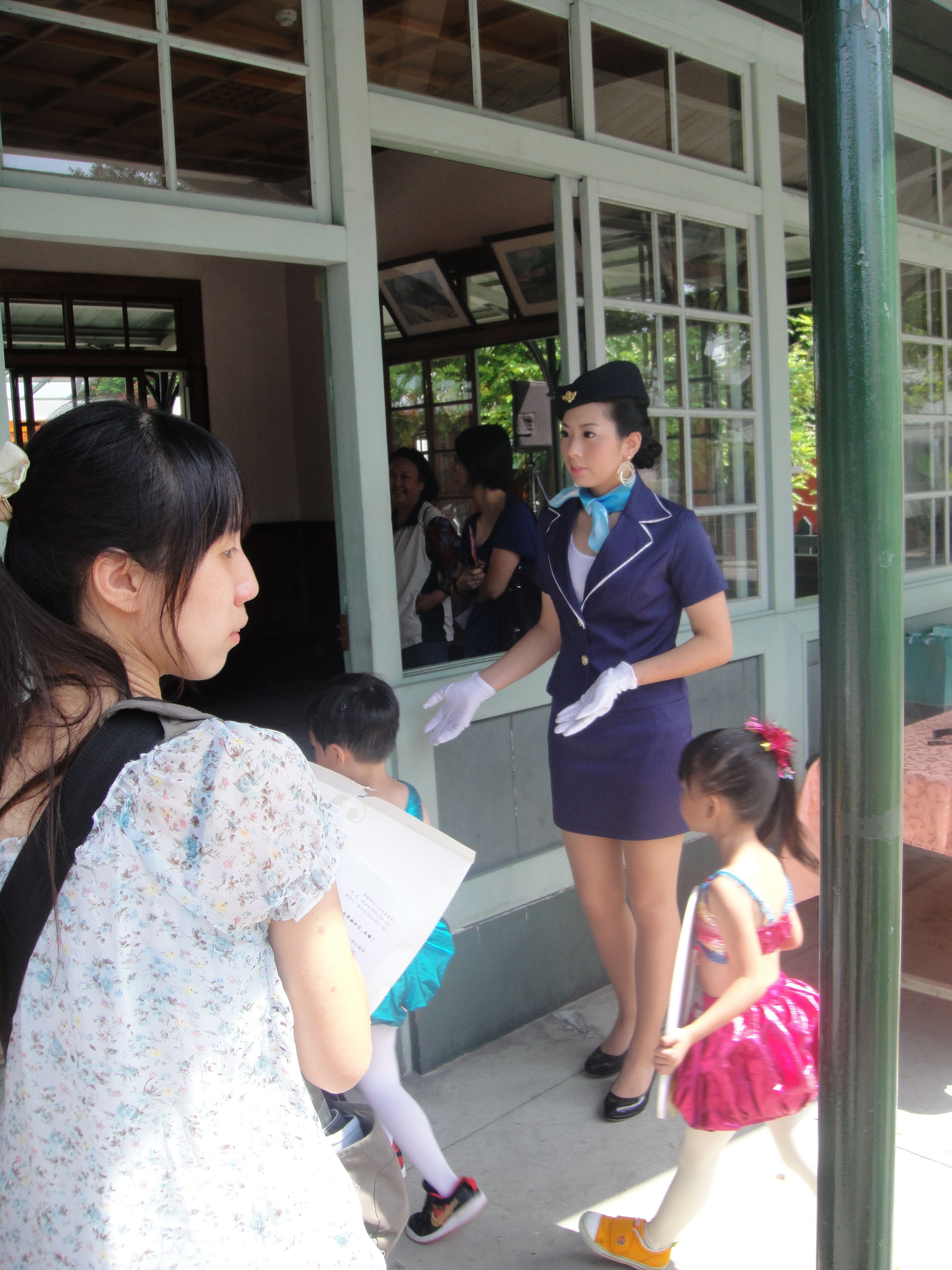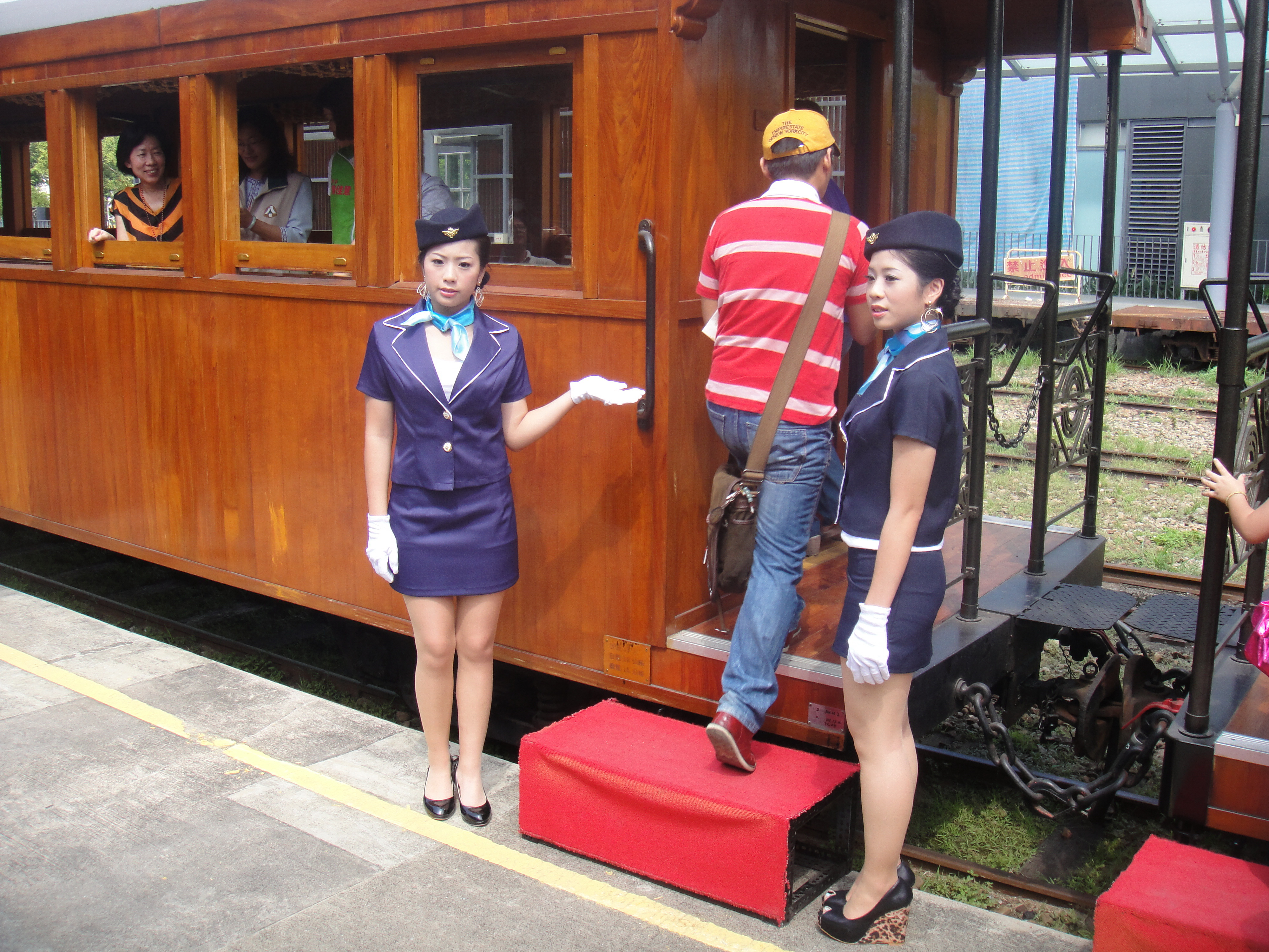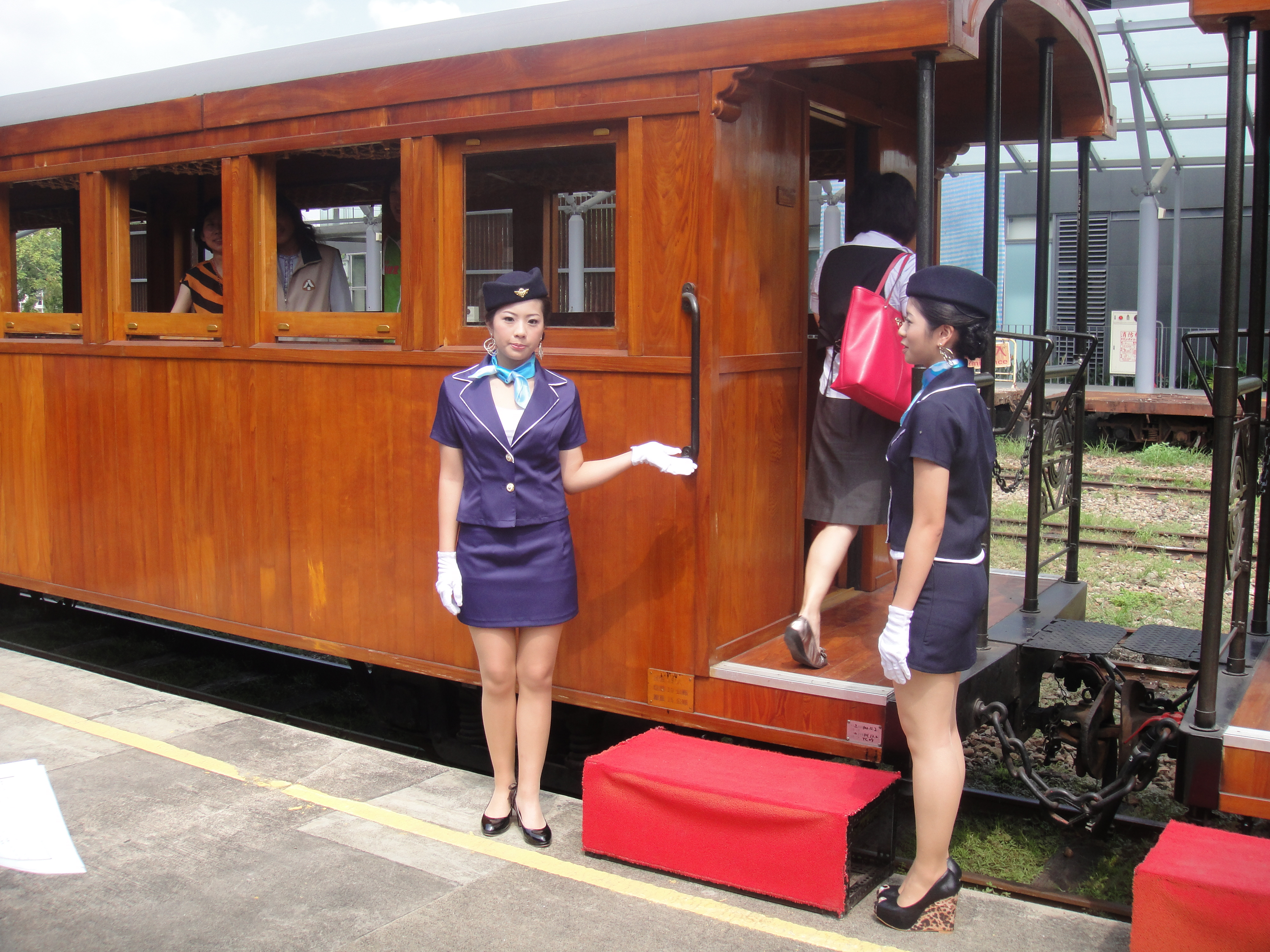 協助嘉義古蹟週時尚造型科學生昨天扮成美麗車掌小姐,現身北門驛1010913
